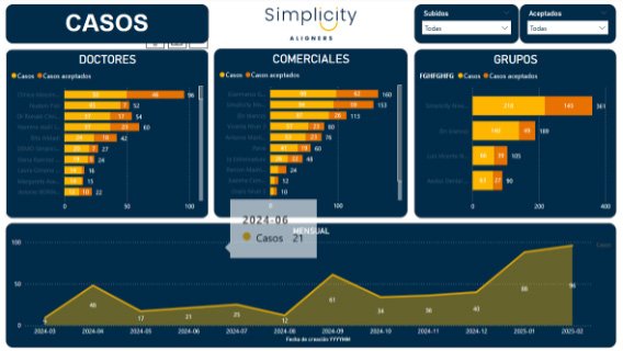 Usar Power BI para analizar la conversión de cada marca, identificando qué clínicas preferían Simplicity Aligners y optimizando su estrategia comercial.