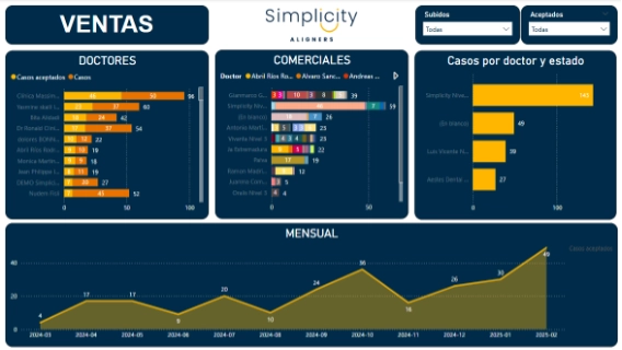 Simplicity Aligners proporcionó alineadores de alta calidad con tiempos de entrega reducidos y una plataforma de control avanzada basada en Power BI, permitiendo a los responsables de las clínicas: