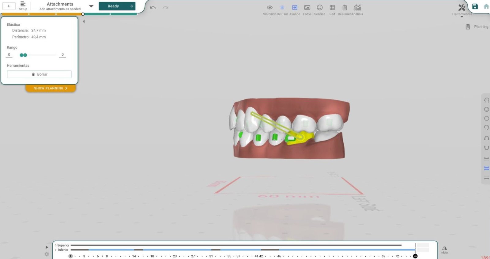 - Optimización de recursos: Facilita al ortodoncista decidir los puntos de anclaje y el tipo de elásticos más adecuados sin necesidad de ensayos repetitivos.