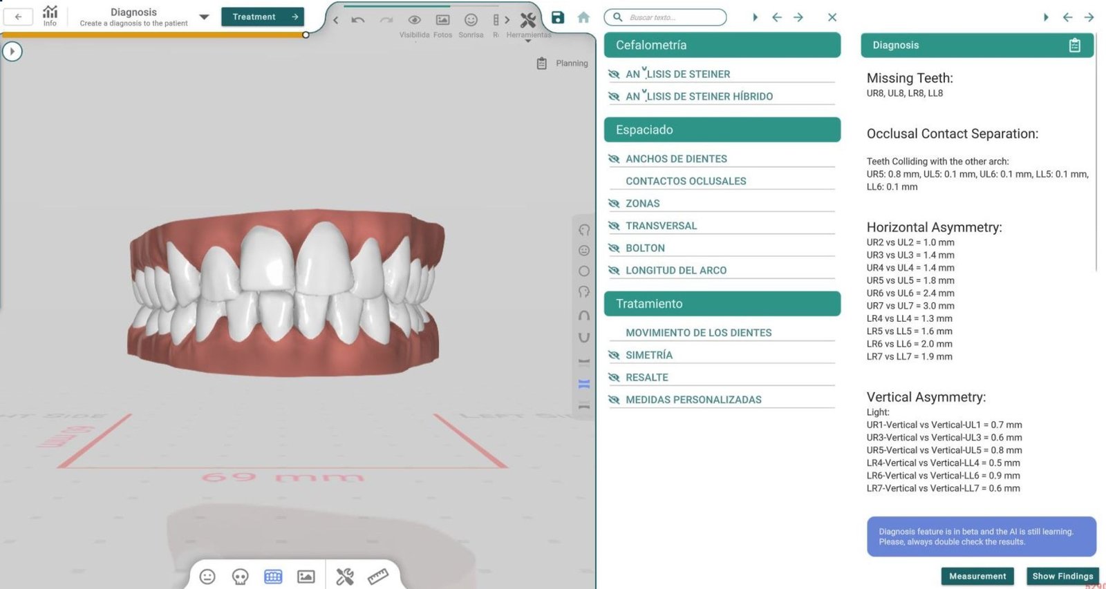 - Visualización clara: Proporciona alertas visuales o reportes específicos sobre áreas críticas, mejorando la toma de decisiones del ortodoncista.