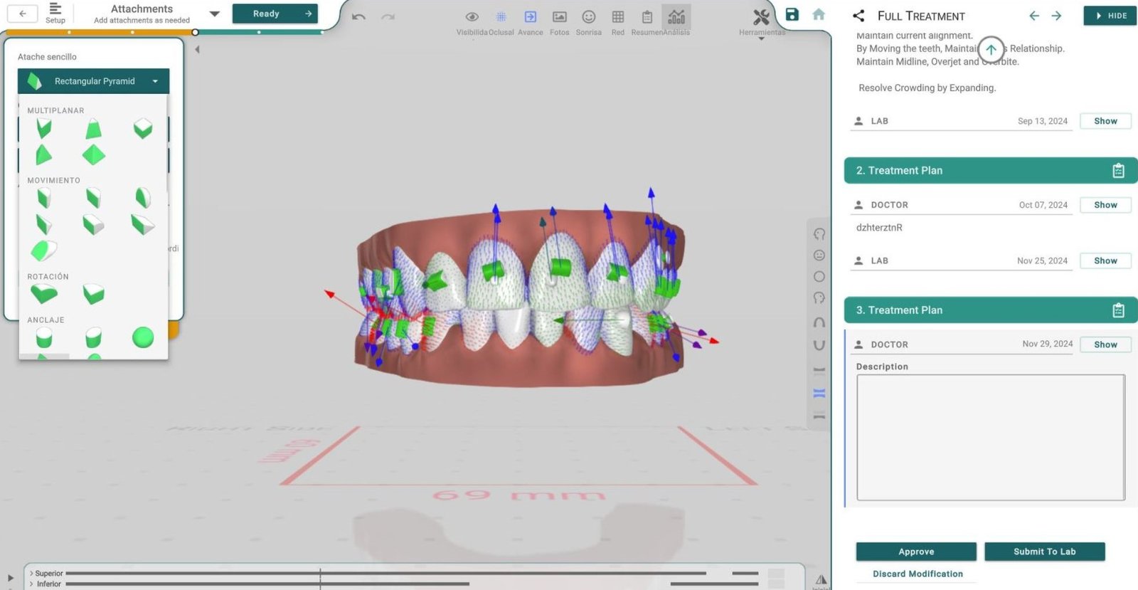 - Monitoreo del tratamiento: Simplifica el seguimiento de los movimientos y ajustes necesarios durante las diferentes fases del tratamiento.