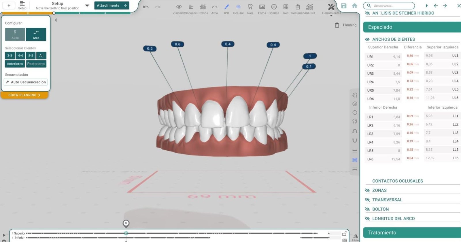 Ayuda a planificar el alineamiento de los dientes dentro del arco, asegurando una distribución uniforme y estética.
