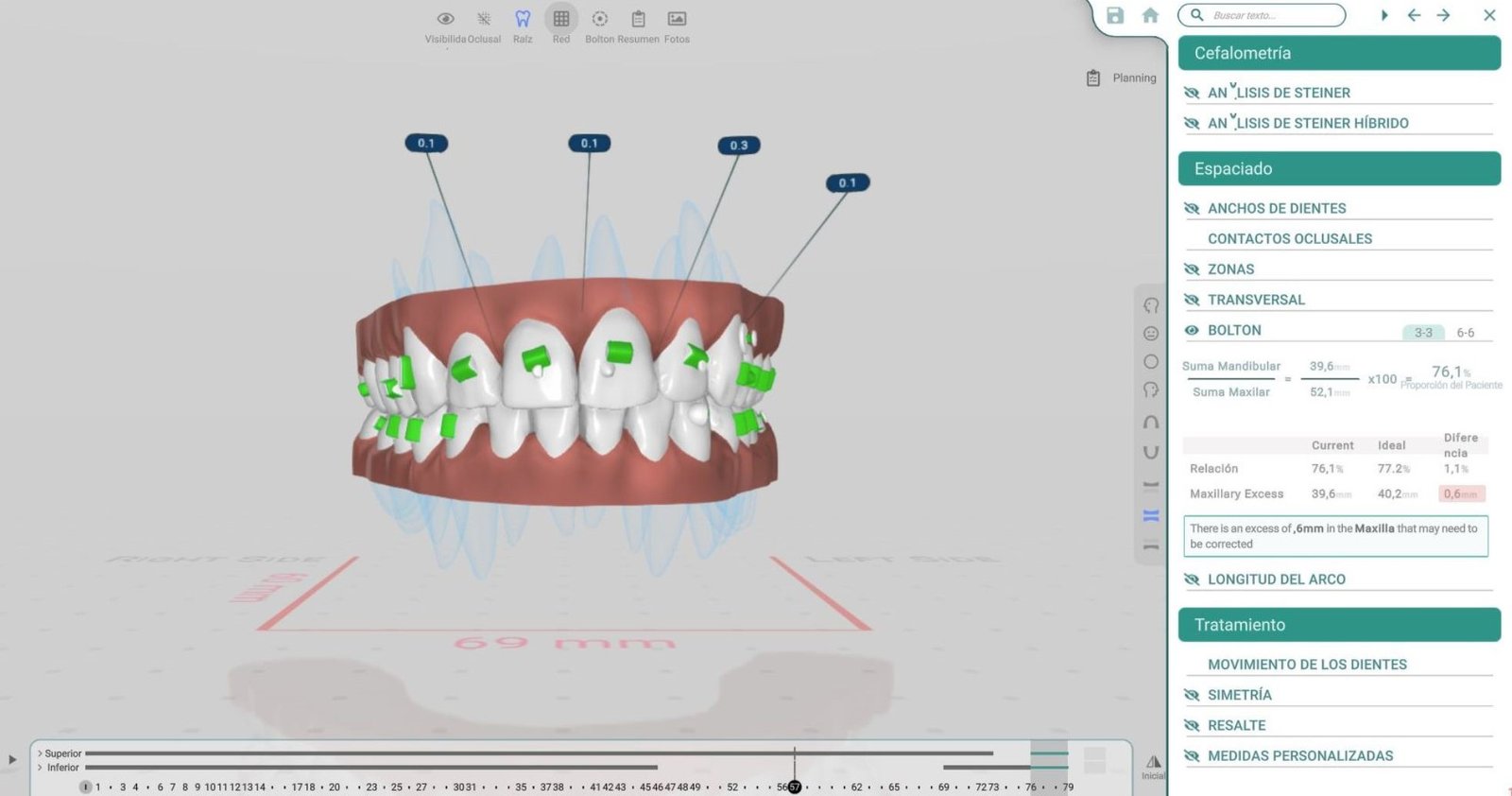 Permite monitorizar el progreso del tratamiento en tiempo real, haciendo ajustes necesarios para garantizar que los objetivos de corrección del overjet y overbite se estén cumpliendo.